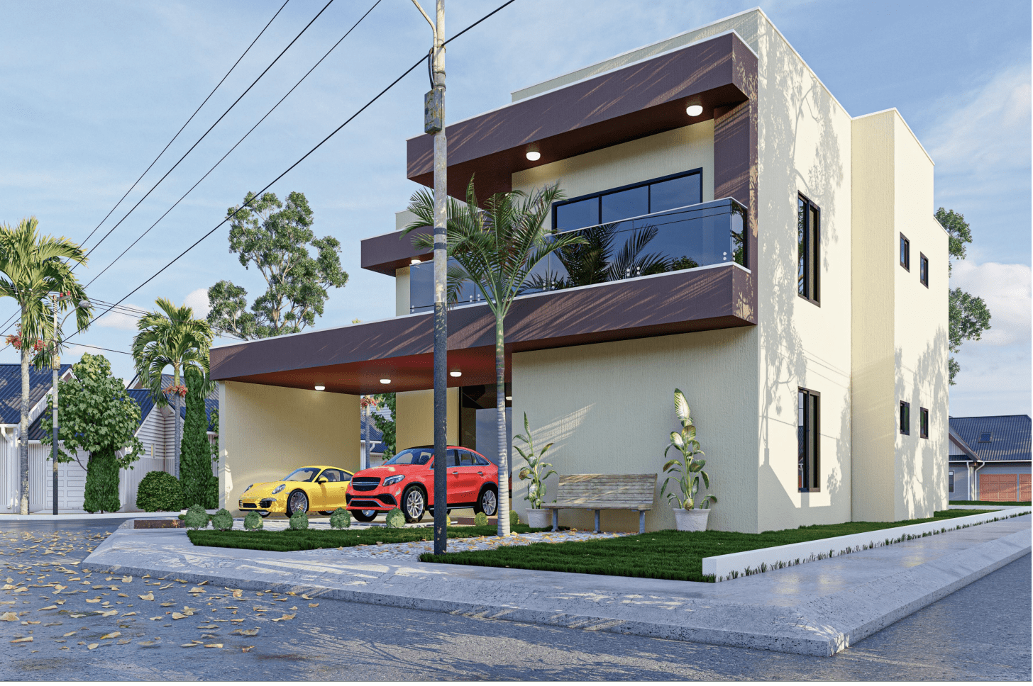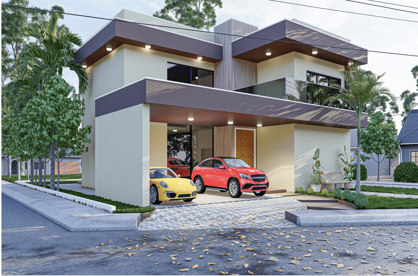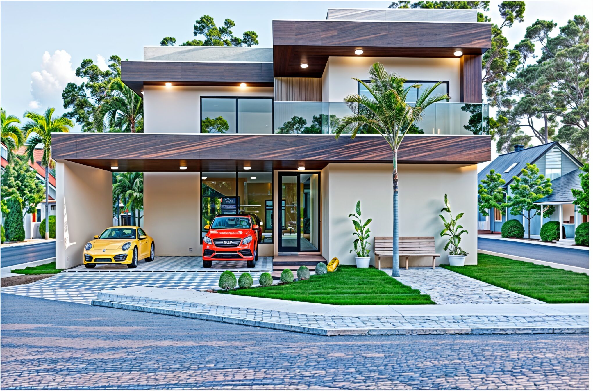Le garage, prévu pour 3 véhicules, est parfaitement intégré à l’architecture et répond aux exigences d’un usage résidentiel premium.
