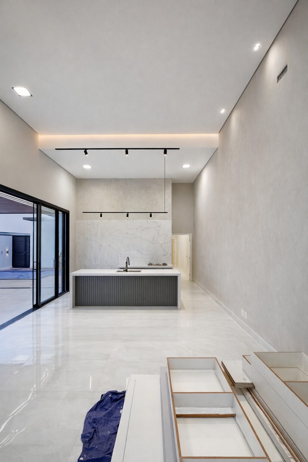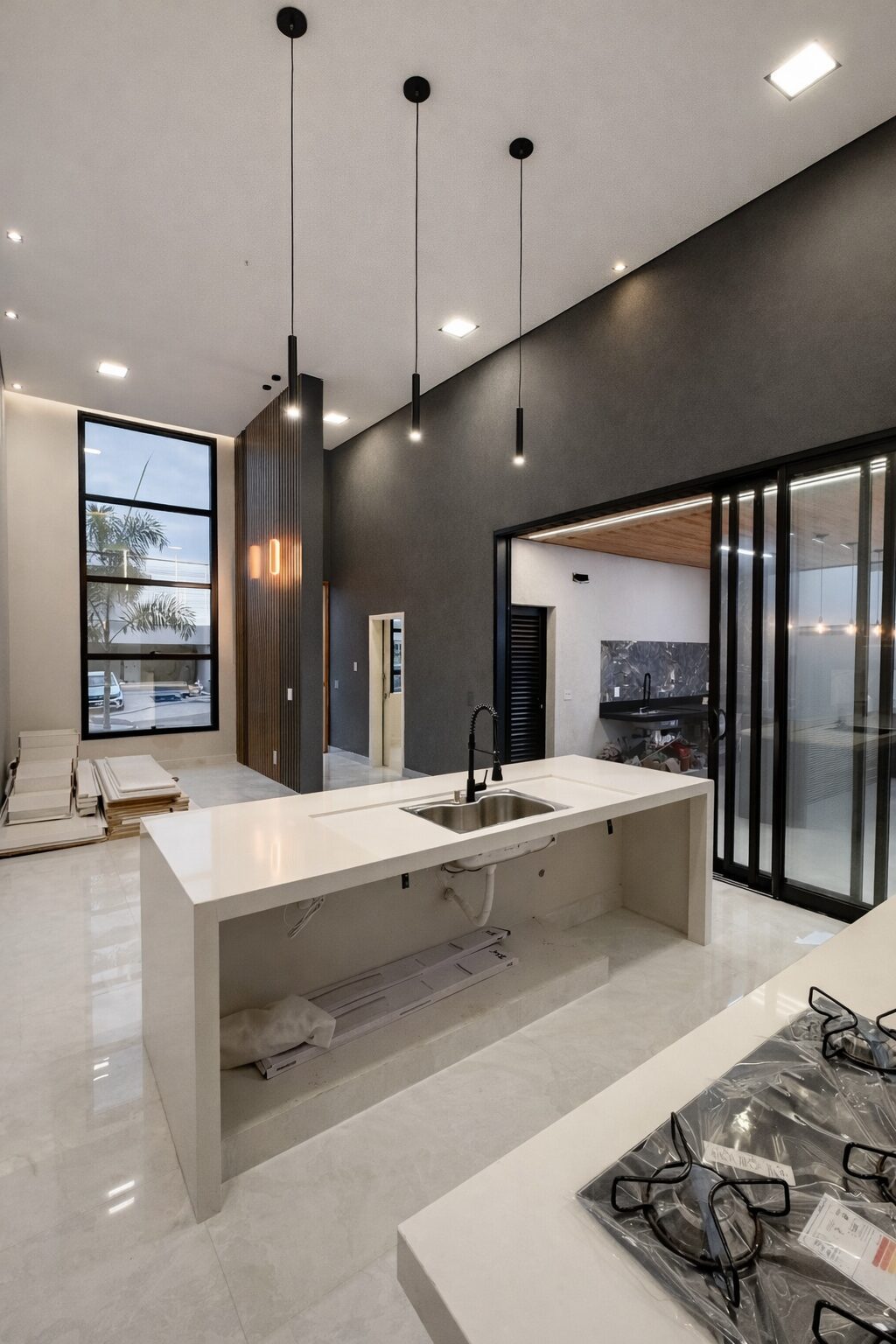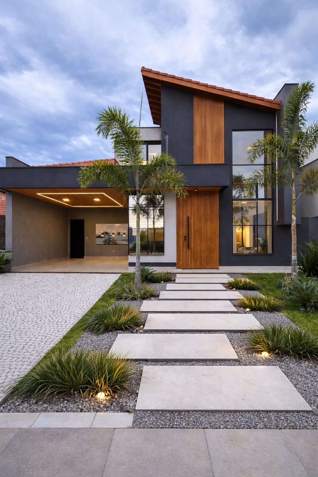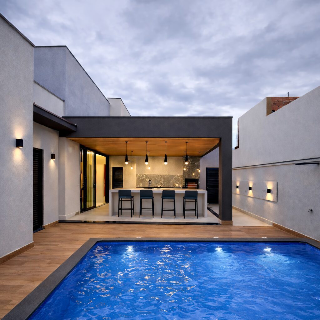 Cette maison de plain-pied adopte une architecture contemporaine sobre et élégante, avec des volumes bien proportionnés, une hauteur sous plafond supérieure et une organisation intérieure optimisée.