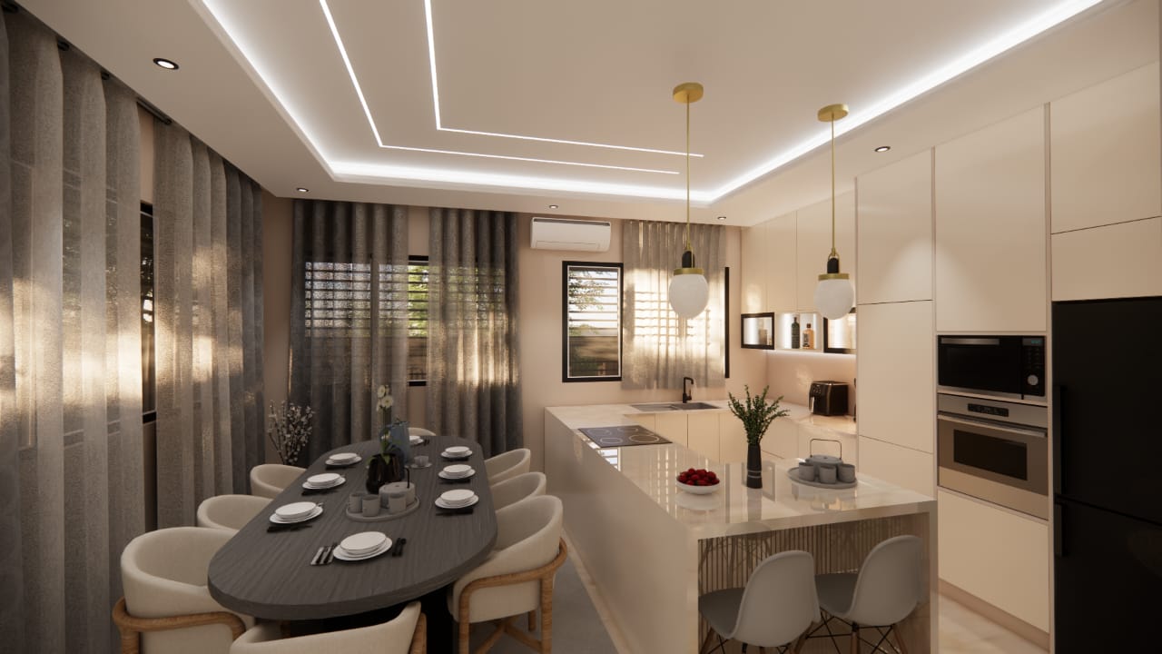 Le rez-de-chaussée est dédié à un grand appartement résidentiel familial, offrant un confort haut standing et une indépendance totale.